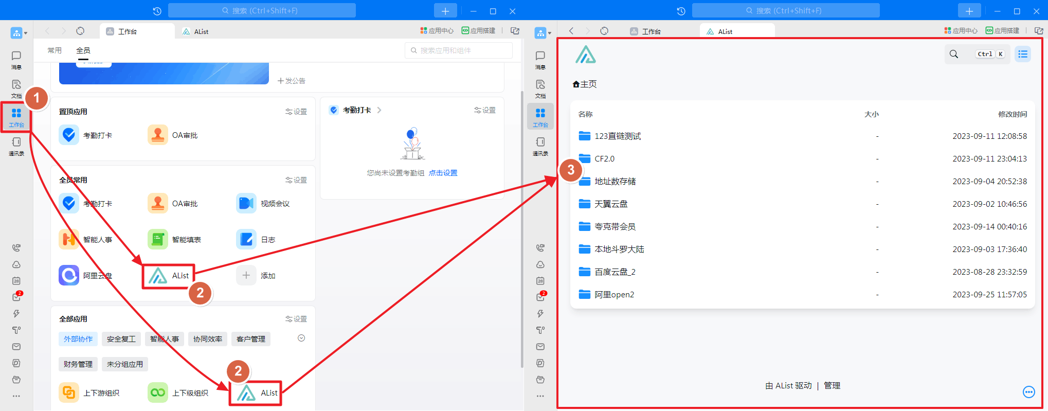 AList applied in Dingtalk and opened as shown in the figure: