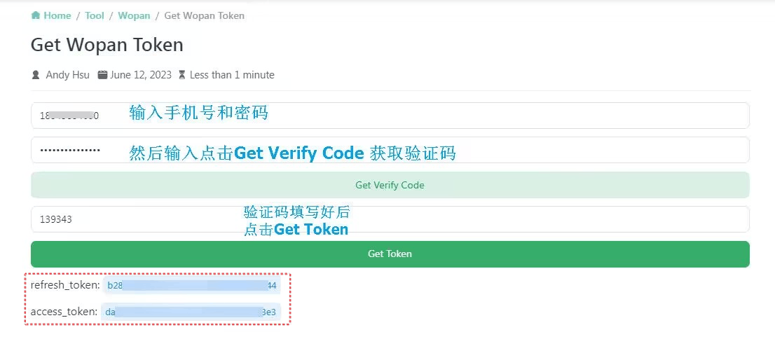 Get the token tool address:https://alist.nn.ci/tool/wopan/token.html